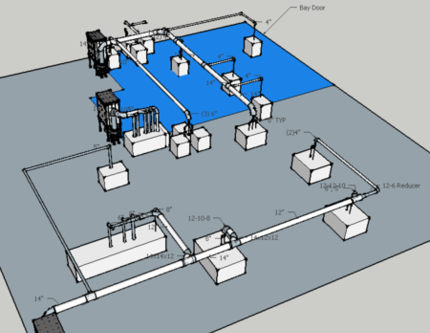 When balancing the airflow and more importantly air velocity in a dust collection system there are two main approaches. Local dealer support. A well-designed dust collection system has multiple benefits resulting in a dust-free environment that increases productivity comply with emission regulations and improve industry employee morale. Dust Collector Duct Design. The first step in designing your system is to draw a floor plan of your shop area including the following. The air velocity at the extraction point pick-up velocity must be high enough to capture the dust. Its always best to pair an air filtration system with a dust collector.
