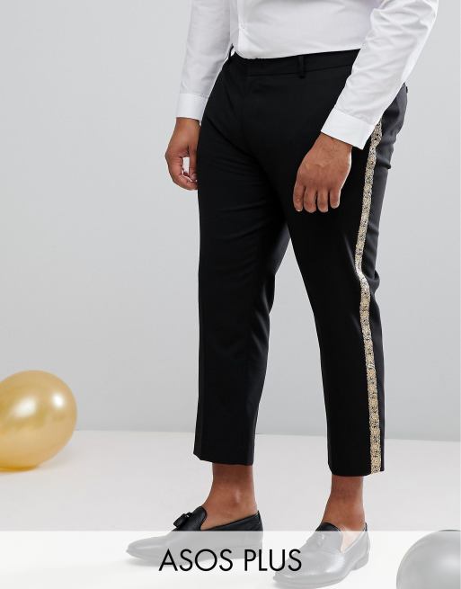 Mens Luxury Paisley Gold Shiny Printed Stylish Slim Fit Button Down Dress Shirt. Black Skinny Dress Pants for Women Business Casual Work Pants Stretch Pull On Slacks with Pockets. Jessiica Howell Fashions La Scala.